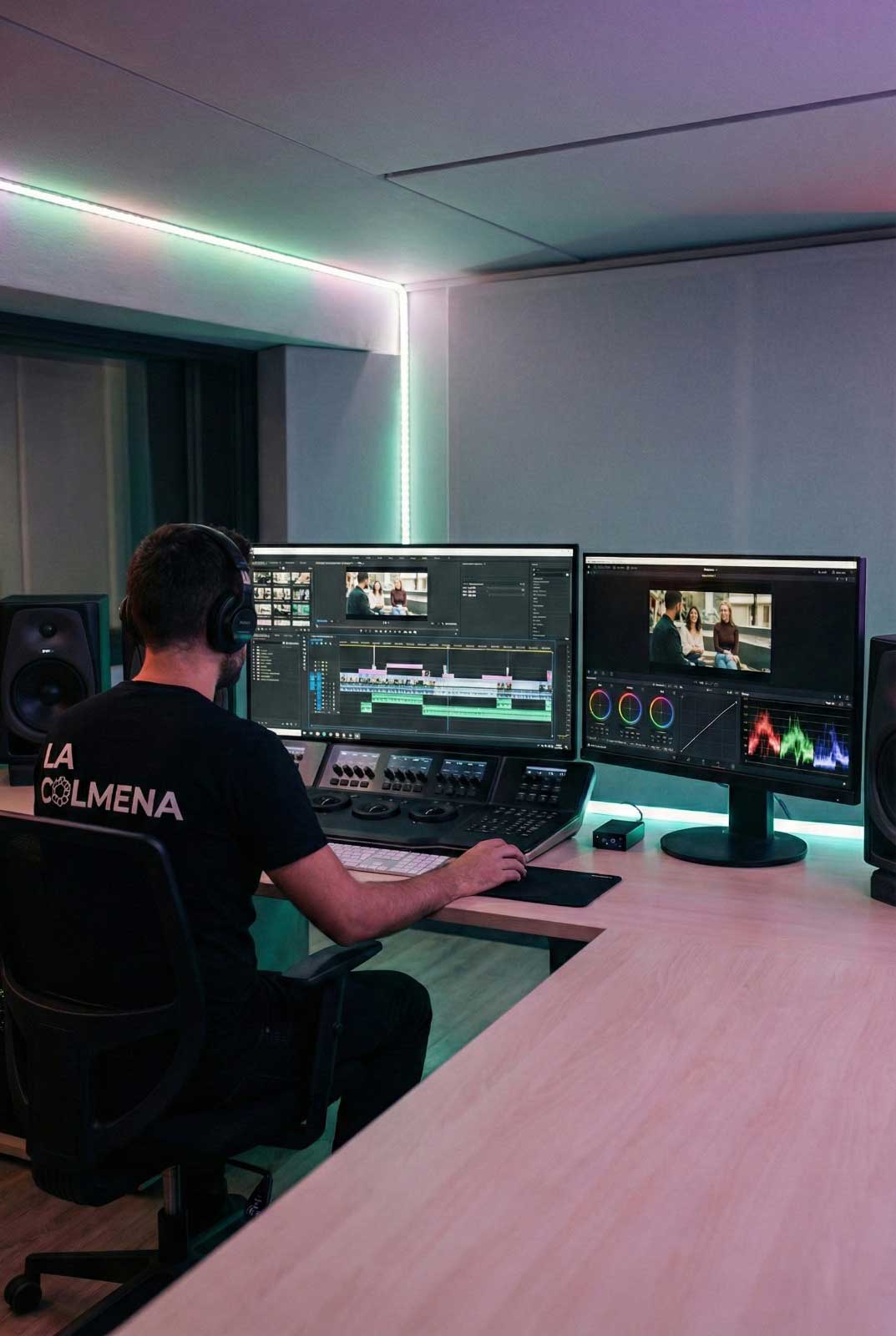 En nuestro estudio, damos vida a la historia. Realizamos el montaje seleccionando las mejores tomas, aplicamos corrección de color profesional (color grading) y un diseño sonoro envolvente. Añadimos música, efectos y gráficos necesarios para crear una pieza dinámica que retenga la atención y transmita exactamente lo que buscas.